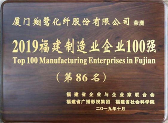 恭賀廈門翔鷺化纖股份有限公司被福建省企業(yè)與企業(yè)家聯(lián)合會、福建省廣播影視集團、福建省社會科學(xué)院評為“2019福建制造業(yè)企業(yè)100強”第86名。