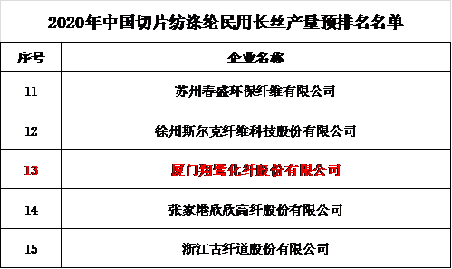 2020年中國切片紡滌綸民用長絲產(chǎn)量預(yù)排名名單