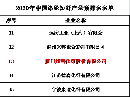 2020年中國滌綸短纖產(chǎn)量預(yù)排名名單