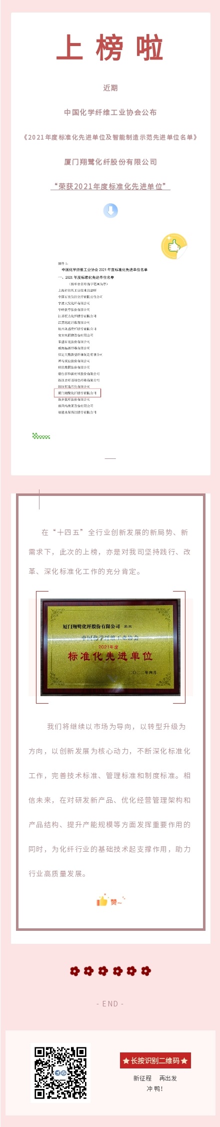 翔鷺化纖榮獲2021年度中國化學(xué)纖維工業(yè)協(xié)會標準化先進單位