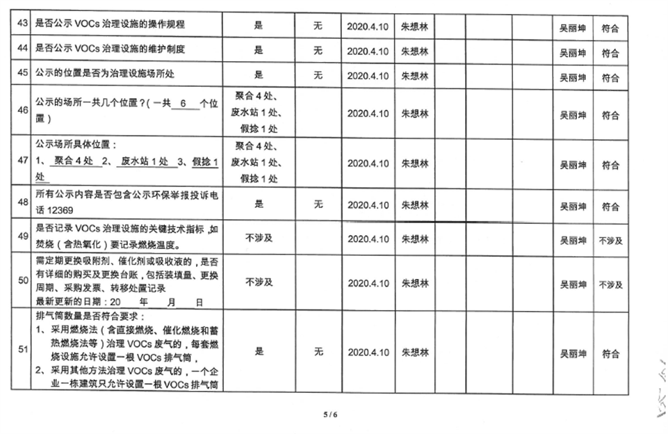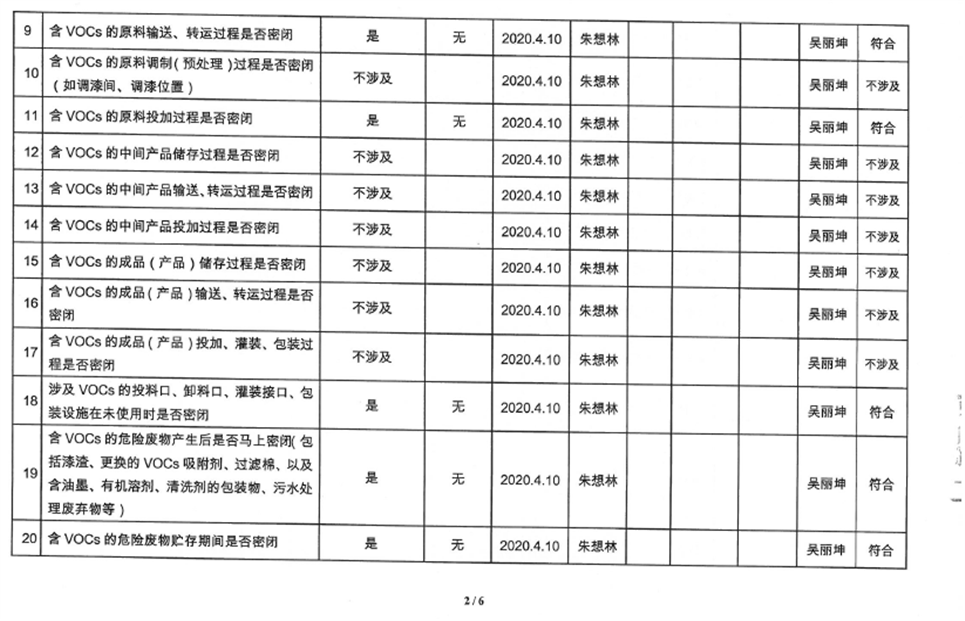廈門市揮發(fā)性有機物污染防治企業(yè)自查表(2020年第一季度)