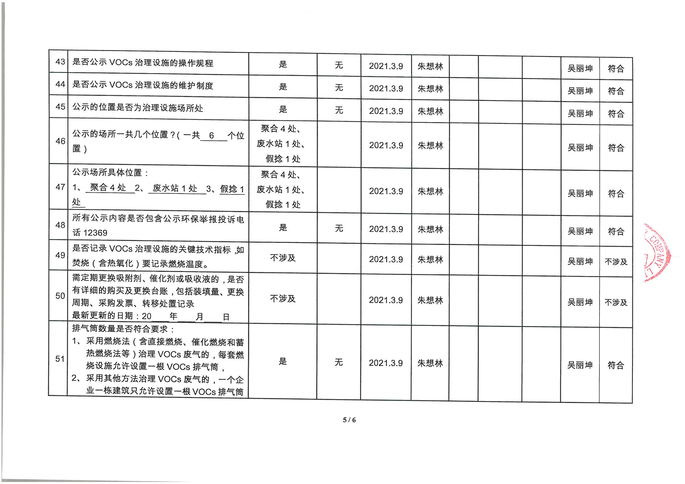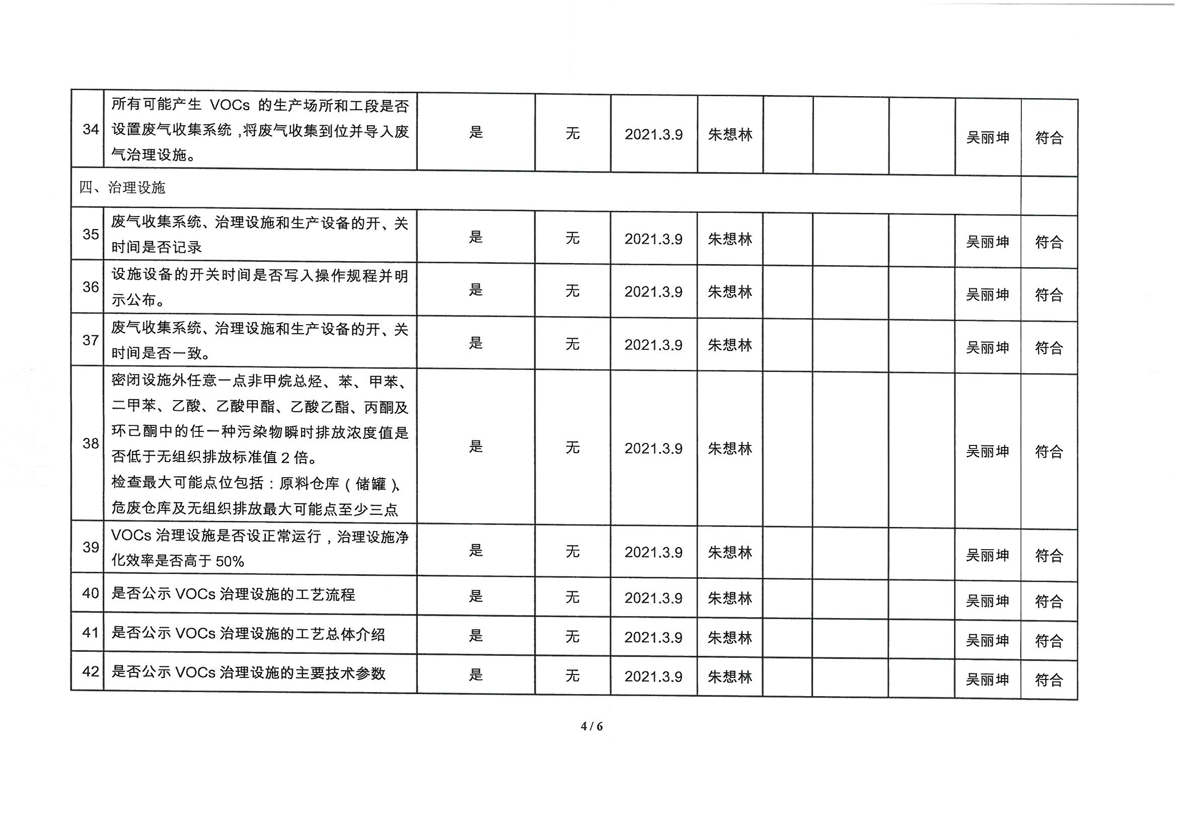 廈門市揮發(fā)性有機物污染防治企業(yè)自查表 (2021年 第一季度)
