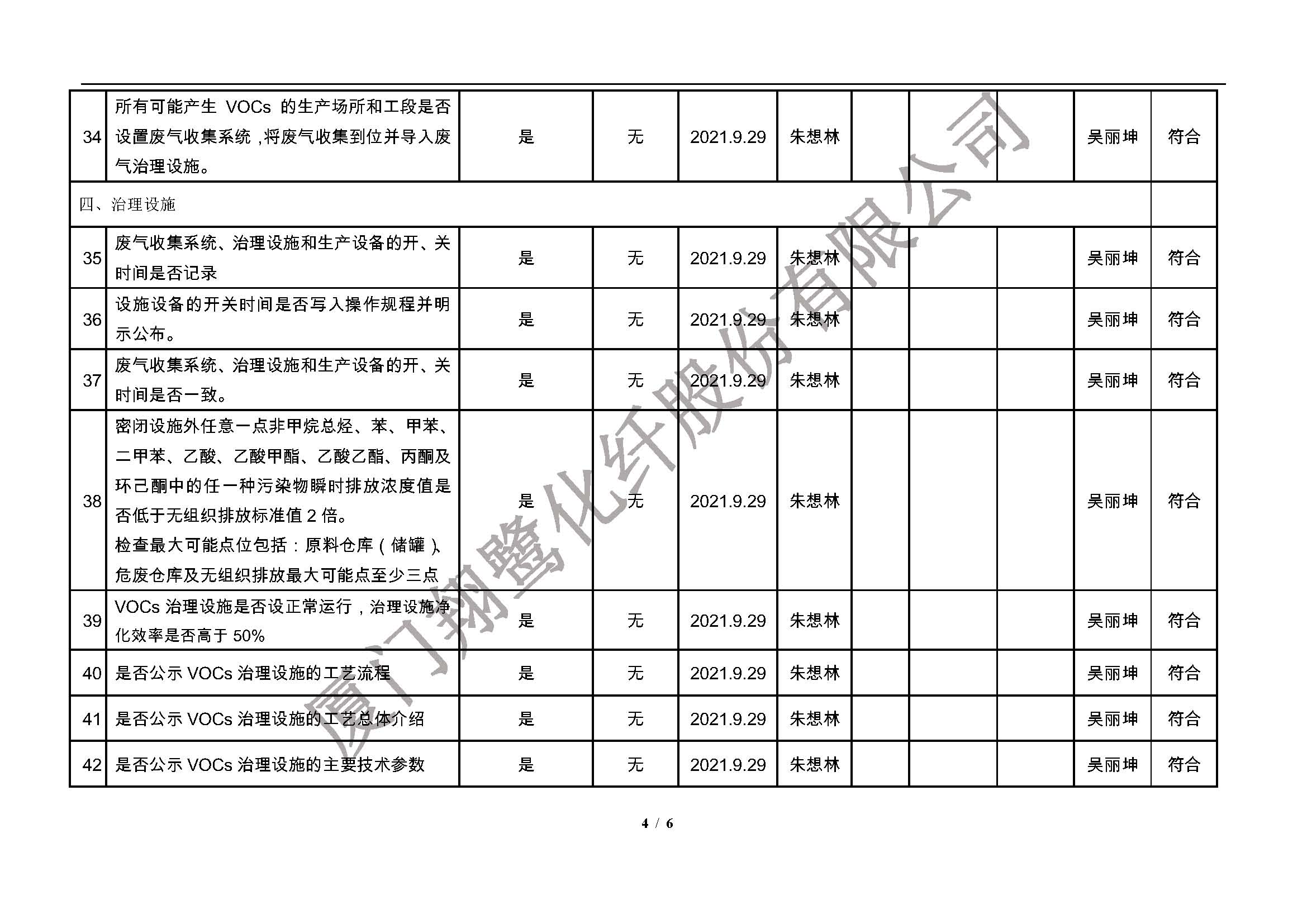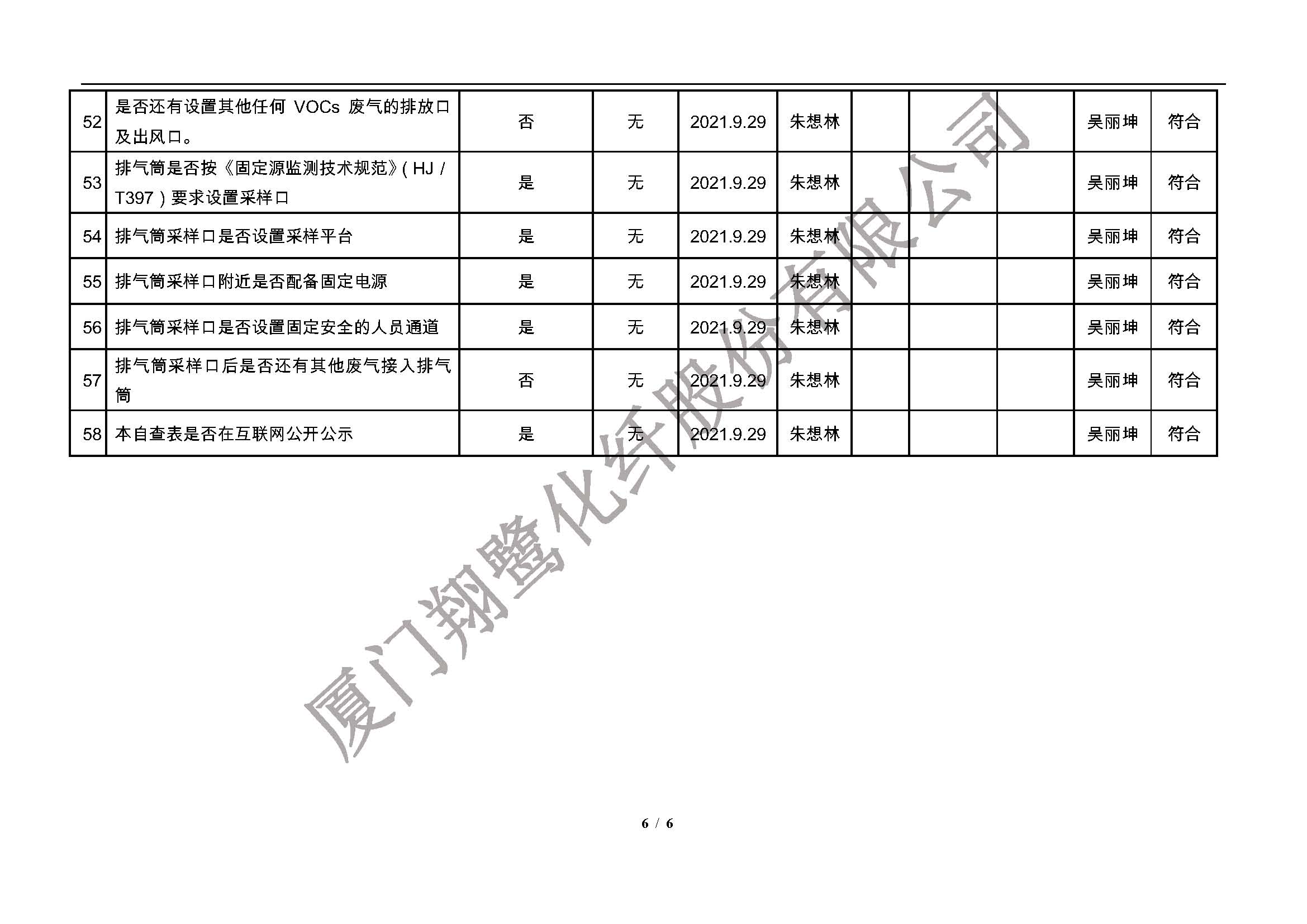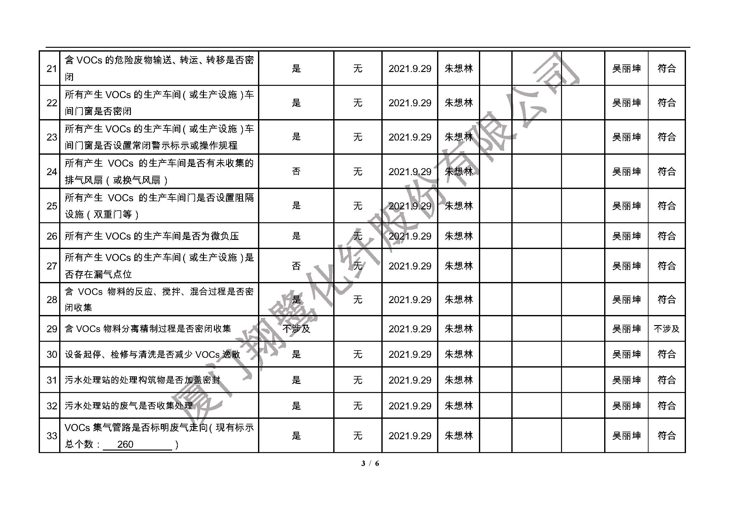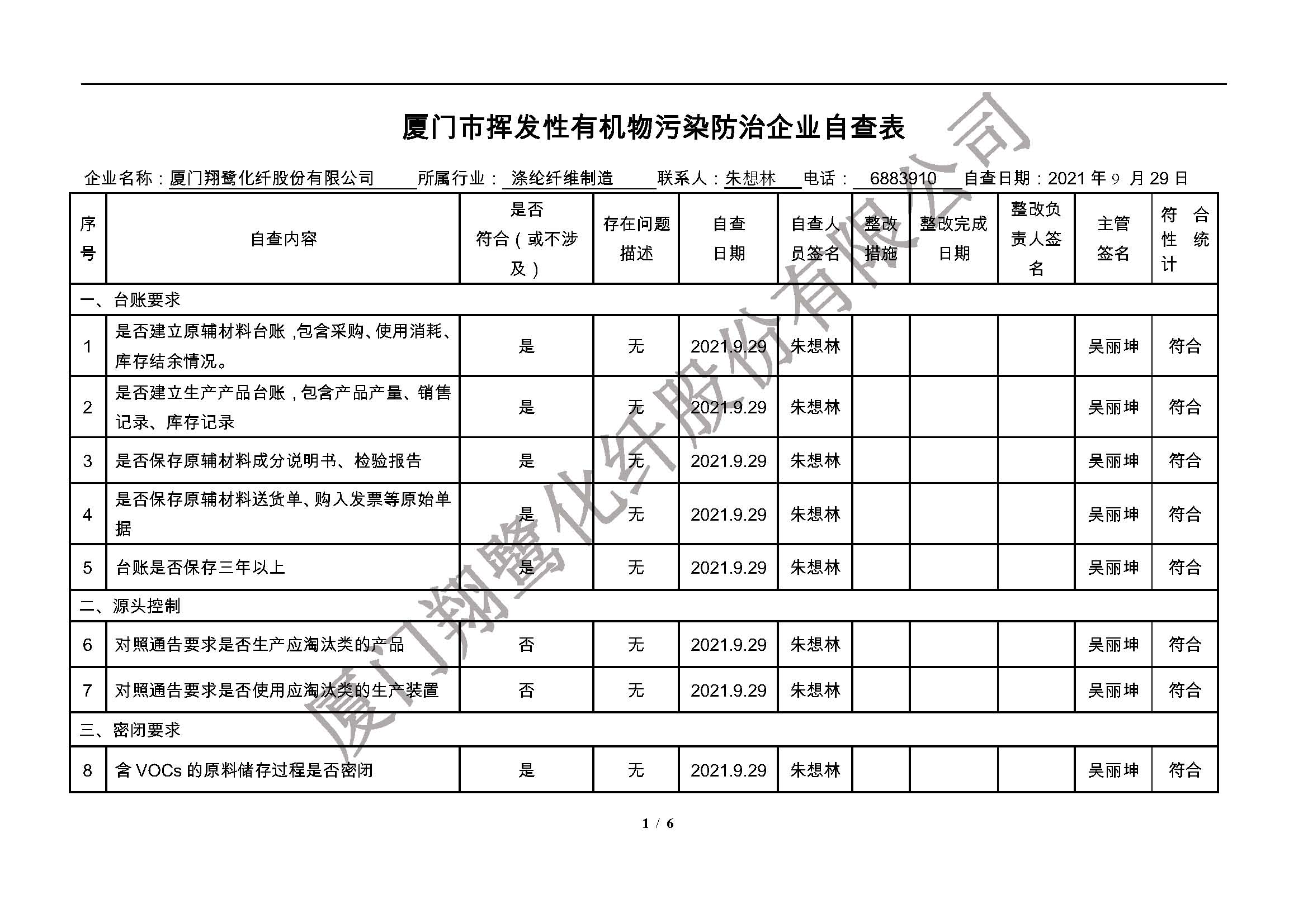 廈門市揮發(fā)性有機物污染防治企業(yè)自查表(2021年 第三季度)